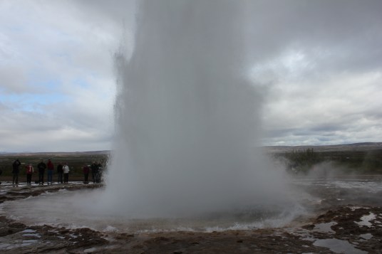 The geothermal activity under Iceland helps the country be non-dependant on foreign oil. Our tour guide was proud to say that they are totally “debt-free to the Arabs”. Part of the activity is seen Iceland’s hot springs and geysers. They are awesome! We spent about a half hour at the Strokkur Geyser, and we go some great pictures: it was hard to pull Carter away. Strokkur Geyser near Reykjavik