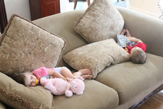 started their lunch (fish sticks and home-made mashed potatoes).  They decided to rest on the couch. When I put
