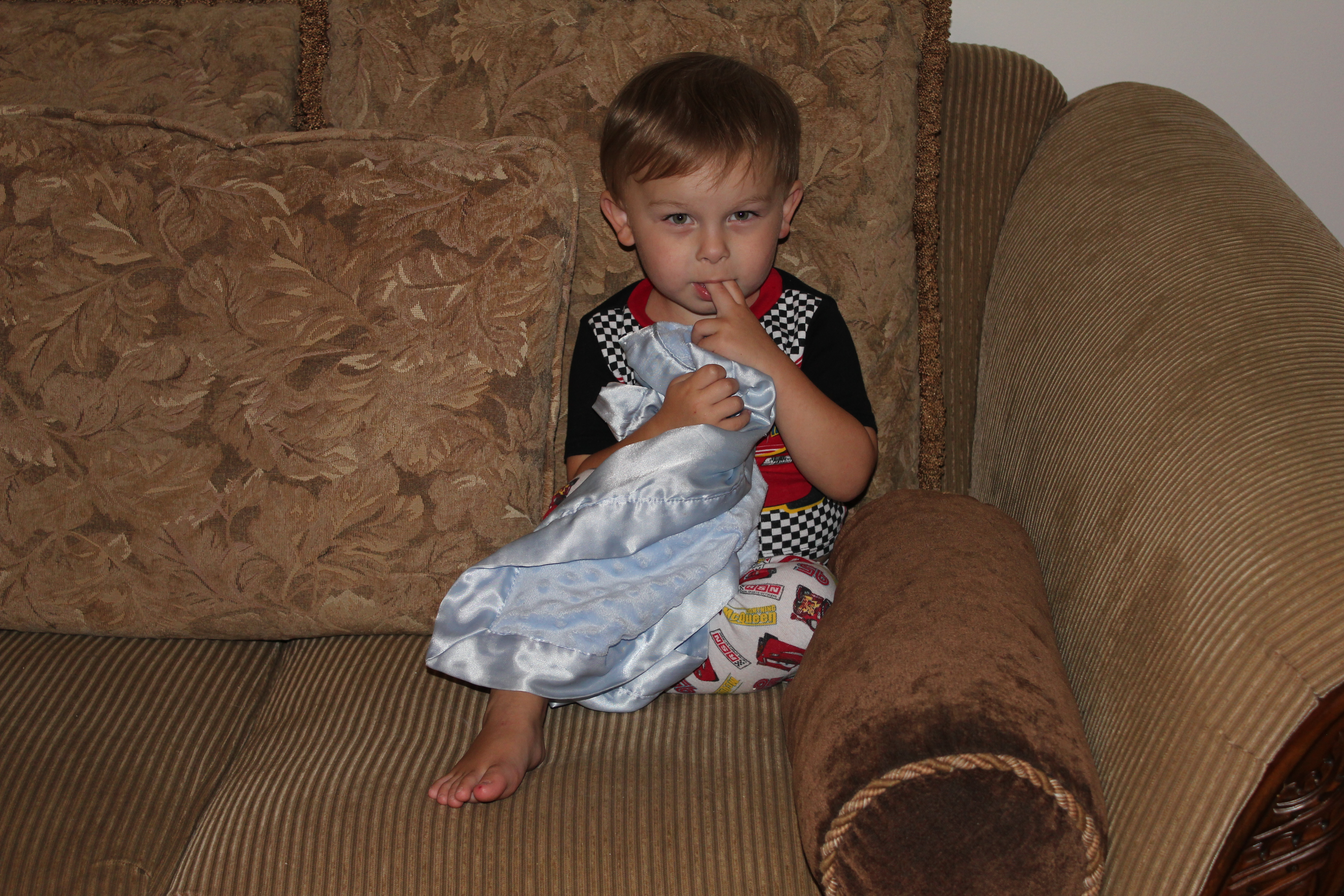was schooled in the art of finger sucking and blanket handling by my son. I received no instructions on the finger part;however, I did not hold the blanket correctly: I was supposed to hold it by the satin edging instead of the combed material. I then sat side by side with Carter and pretended to be him. He smiled and watched T. V., and Ammon sat
