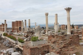 John the Apostle also died and is buried in Ephesus at approximately 100 years of age, and a huge church was built over his grave. Emperor Justinian and his wife, Empress Theodora of the Byzantine Empire replaced the large, simple church with a huge, Christian, Byzantine basilica. Based on the ruins ( earthquake), it looked quite impressive. It is said to be the first Christian church built in the form of a cross.