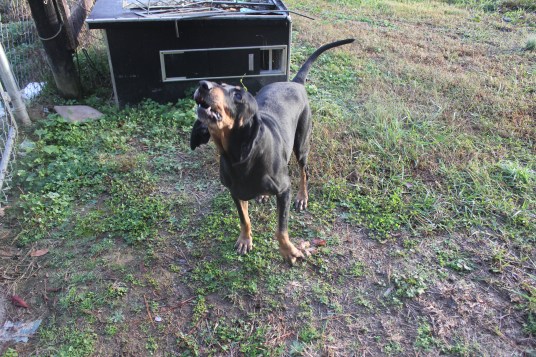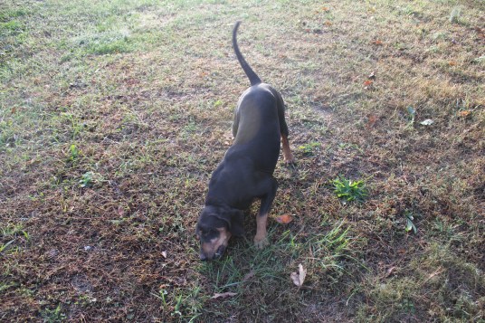 I really want Ammon & Carter to enjoy the night woods with me. It will be hard for me to go alone w/o them, but I will not be gone for long either with them or w/o them. I’ve gotten out of the night tracking since Carter and Ammon came almost 4 years ago, and I’m looking forward to being in the woods for myself and for my hounds. Here are the hounds on Friday morning (10-19-2012). It was cool, crisp, and just “hankering” for a frost ( I could tell, but it was only 42 degrees here).