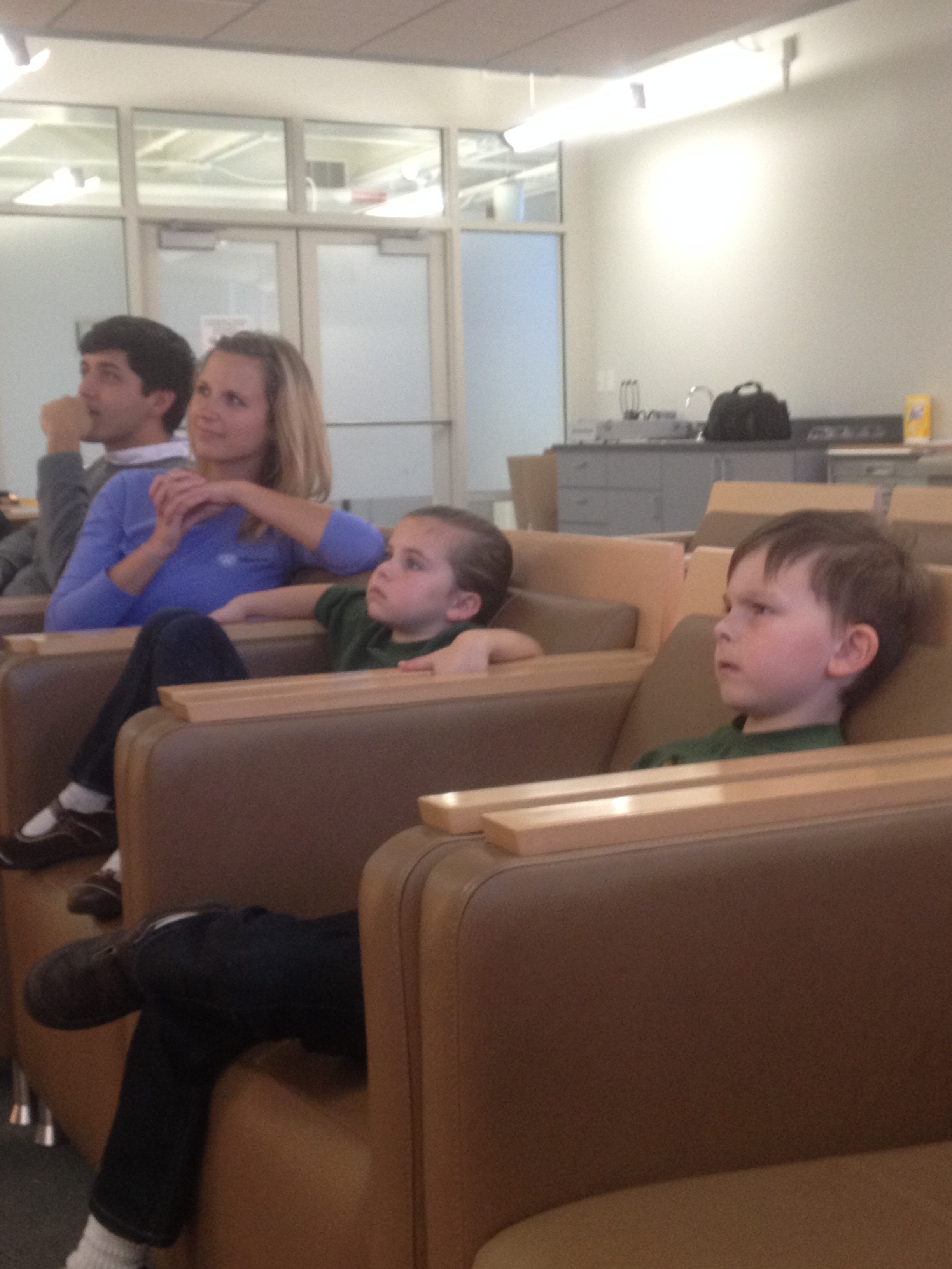 We all sat comfortably in the mini-theater where we viewed two videos.The first video was on the history of the Chattanooga Volkswagen plant. It was so professional and personal to our hometown in which Carter and Ammon are so proud. “Wow, Chattanooga!”, Carter whispered to me. The video ended with a focus on how the Passat (the plant’s car) won Motortrend’s 2012 Car of the Year Award, and it all connected to the hard working team at the Chattanooga plant. The second video was only 3 minutes, but it showed a 12 -hour time lapse of how a Passat is fabricated. Ammon and Carter sat riveted. When the video finished, Carter exclaimed. “Wow, they made that car fast!”. We all giggled.