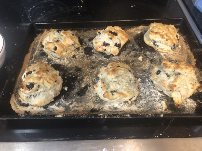 Carter fixed a tasty Turkey-fried rice that I carried to school last week, yet I have no photos. It was admirable none the less. One reason I don’t have a photo is because they prepared it at 8:30 one night while I was doing lesson plans for school. Ammon has baked twice this past week while during “down time”, and I’ve been free to snap some pics. Ammon made some blueberry scones with a biscuit recipe last week; they rivaled Bojangles’ Bo-Berrys. On Friday night we mixed and placed homemade biscuits in the fridge for this AM’s breakfast. They were AWESOME. Today’s breakfast was treat for me since I have been working with a calorie deficit since July 21. We had biscuits, fruit salad / ambrosia ( a Nanny Caylor -learned treat) , grits, and a breakfast casserole ( eggs, ground sausage, and tater tots ) . I was in “Breakfast Hog Heaven” !!