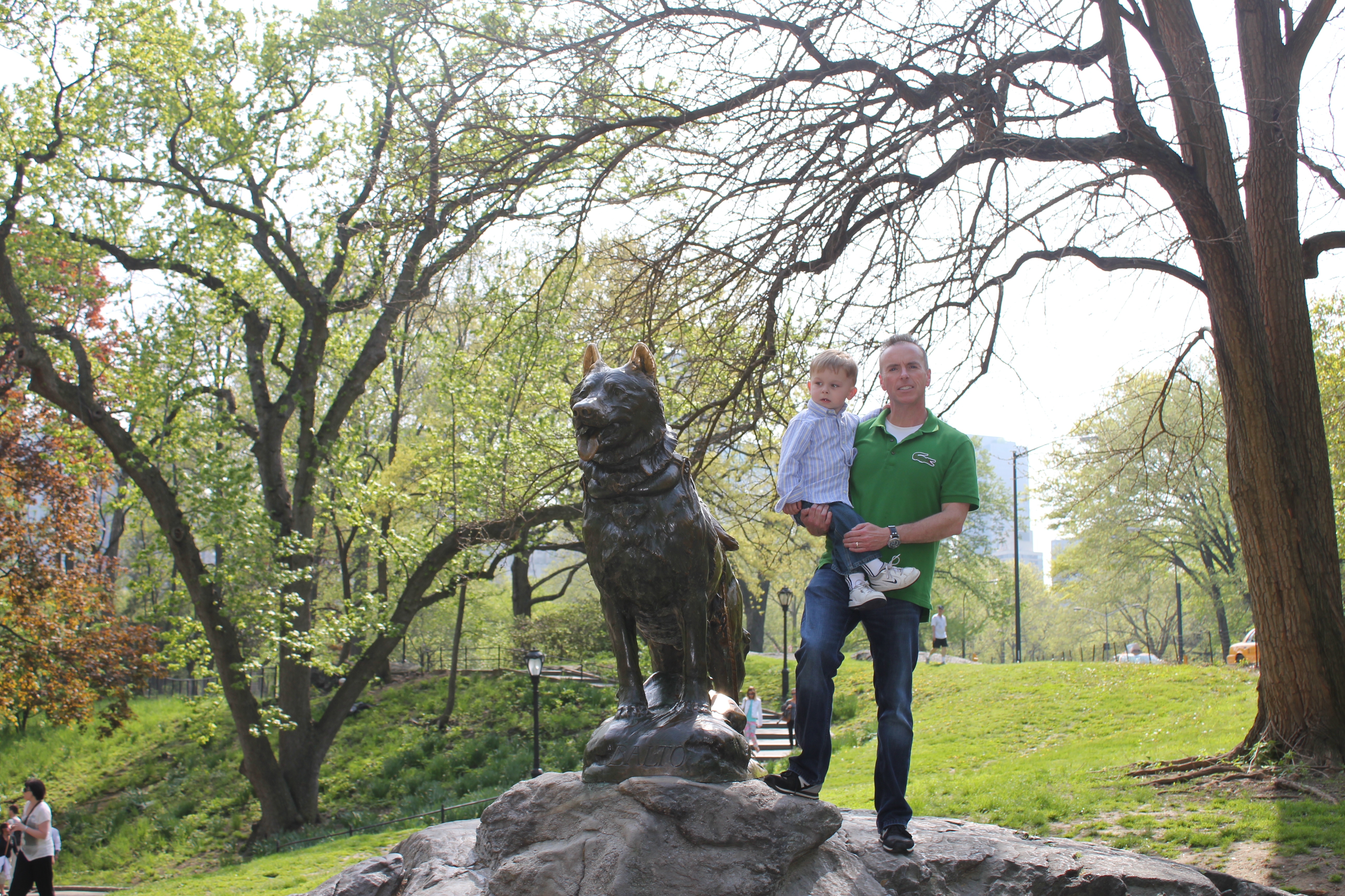 Here are pictures from Central Park. The babies and I are around the statue of Balto. He is the Siberian Husky who led the final leg of the dog sled team when in 1925, the town of Nenana, Alaska was suffering from an outbreak of diphtheria. The sled team was carrying the antitoxin. This is the run that is commemorated in the Iditarod Trail Sled Dog Race each year. We have seen the statue several times in Central Park, and this is the first time I haven’t cried while contemplating those wonderful dogs and their heroic run. I can’t help it. I love dogs!!